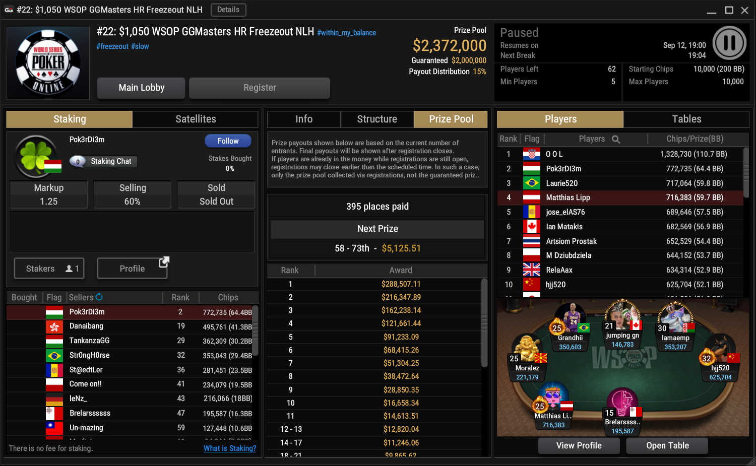 “Στην 198η θέση του $1.050 Masters Freezeout αποχώρησε ο “GGfiogos” για $2.663.