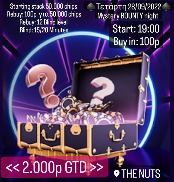 Τετάρτη 28 Σεπτεμβρίου – NLHE Mystery Bounty
