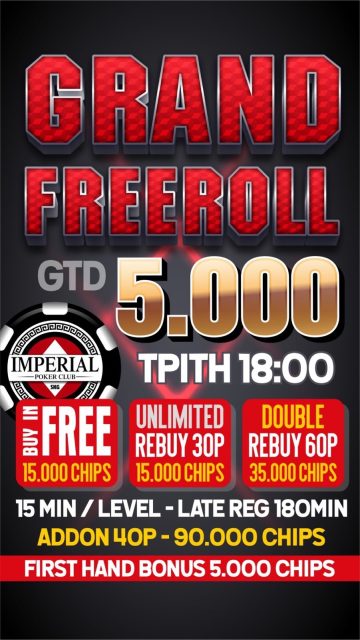 Σήμερα όλοι οι δρόμοι οδηγούν εκ νέου στο Imperial poker club και στο μεγαλύτερο freeroll που έχει λάβει χώρα έως τώρα με 5.000p gtd!