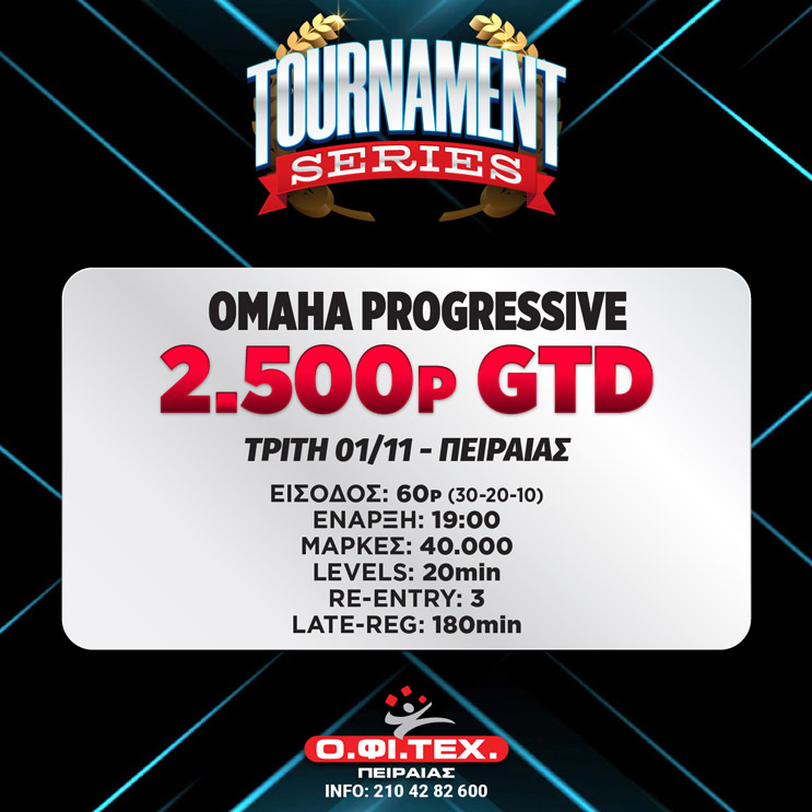 O.ΦΙ.ΤΕΧ.: Στις 19:00 το Omaha Progressive με 2.500p gtd!