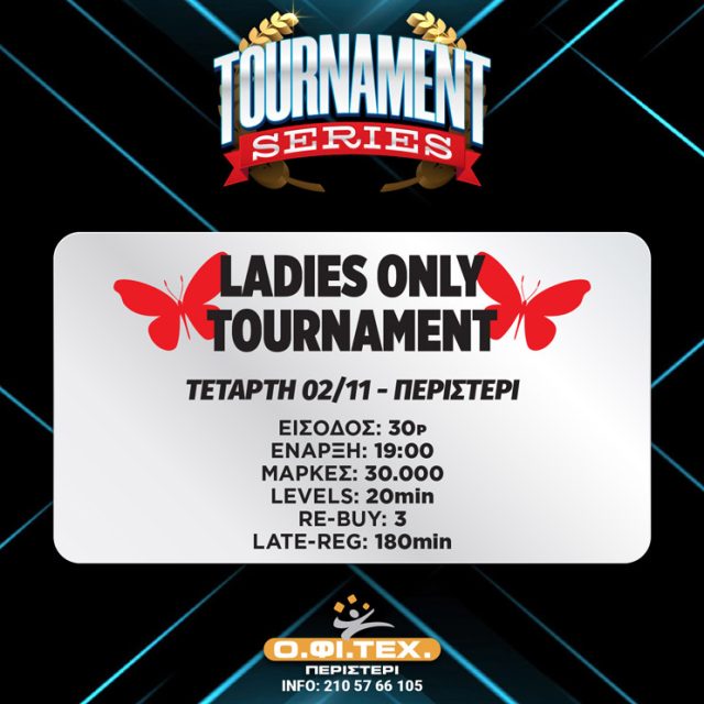 Μπορεί το πόκερ να είναι κατά βάση ανδροκρατούμενο άθλημα, αλλά τα ladies tours δεν λείπουν από κανένα φεστιβάλ και μια τέτοια ευκαιρία δίνεται σήμερα στο Περιστέρι στα πλαίσια της O.ΦΙ.ΤΕΧ. Tournament Series!