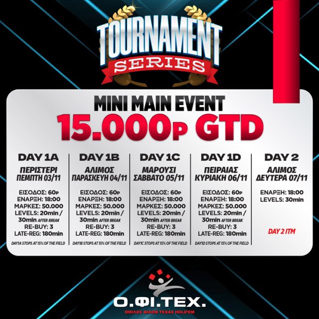 Θυμίζουμε πως αύριο ξεκινάει το mini main event με τέσσερα flights και 15.000p gtd!