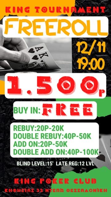 Σάββατο 12 Νοεμβρίου – NLHE Freeroll