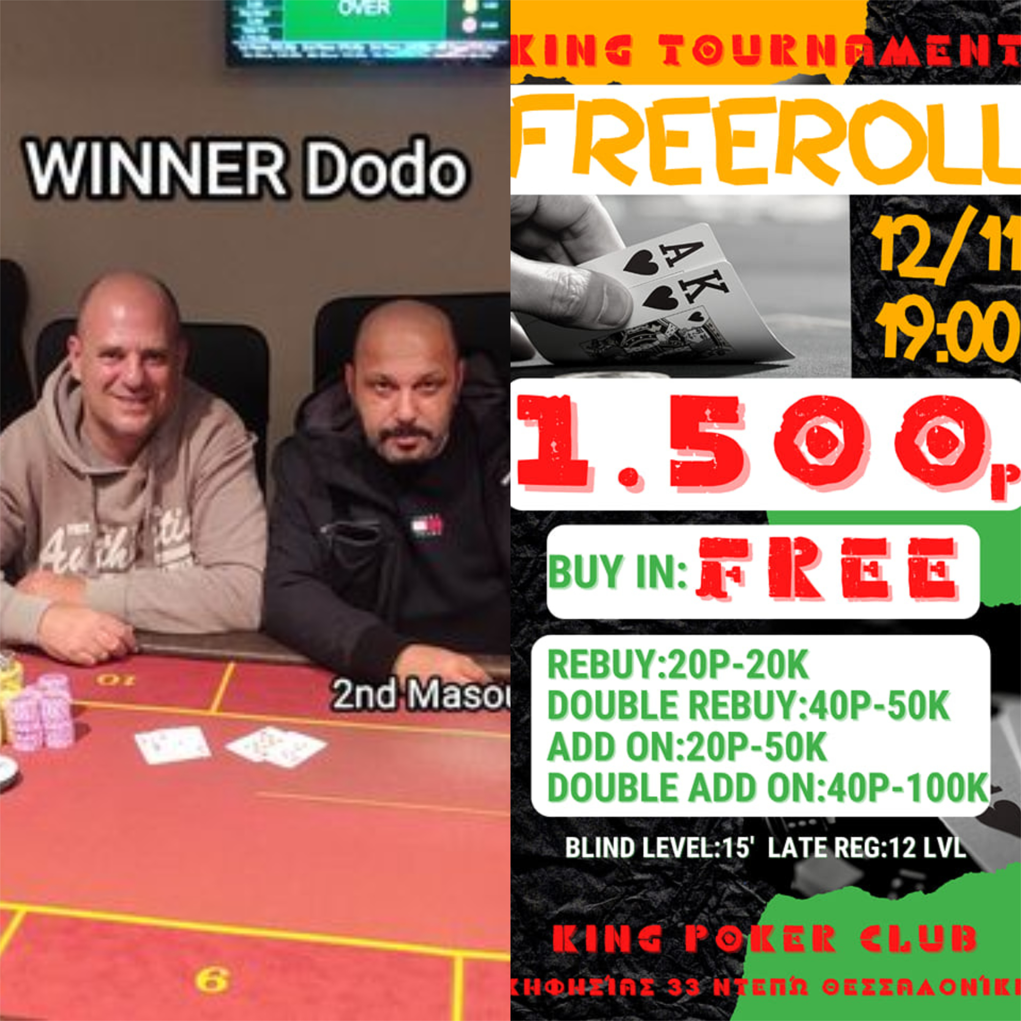Με 1.752p στο prize pool (1.500p gtd) και τους “Dodo”-“Masoutis” να κάνουν το 1-2 ολοκληρώθηκε το χθεσινό μίνι τουρνουά του King!