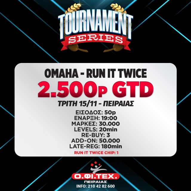 το Omaha Run it Twice (2.500p gtd) στον Πειραιά
