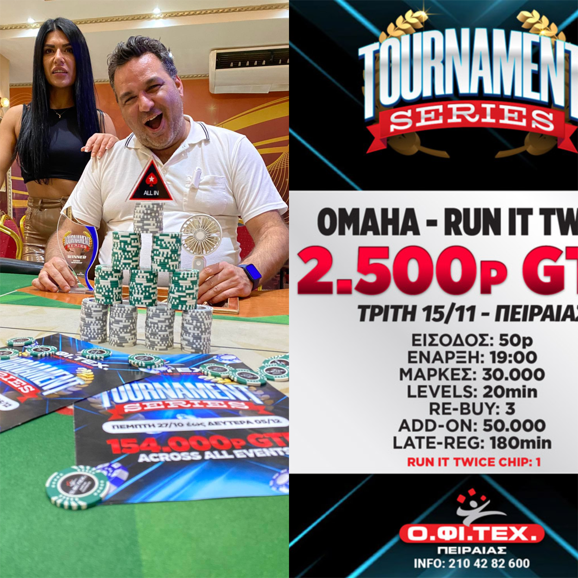 το Omaha Run it Twice (2.500p gtd) στον Πειραιά