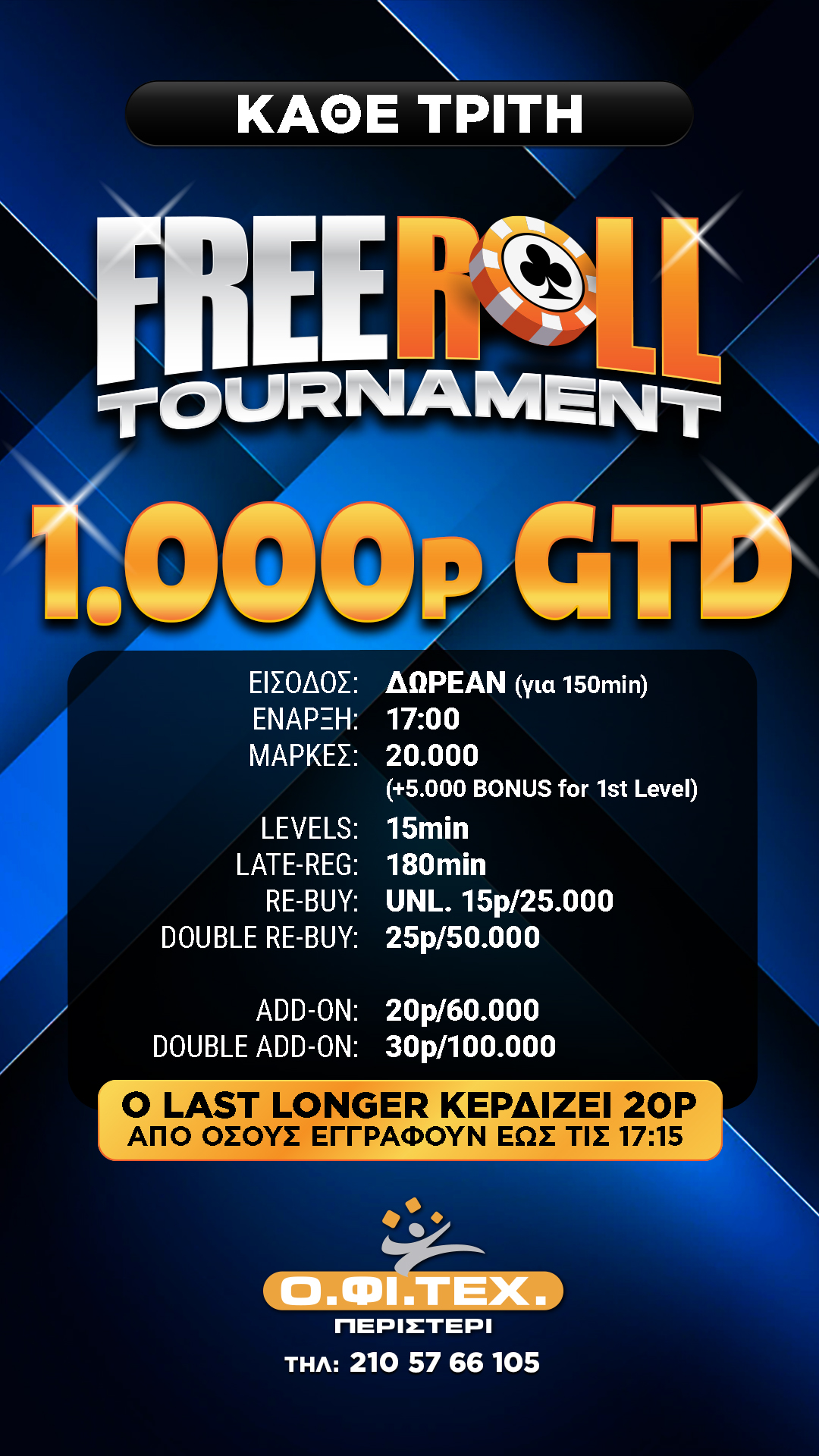 Κάθε Τρίτη freeroll με 1.000p gtd