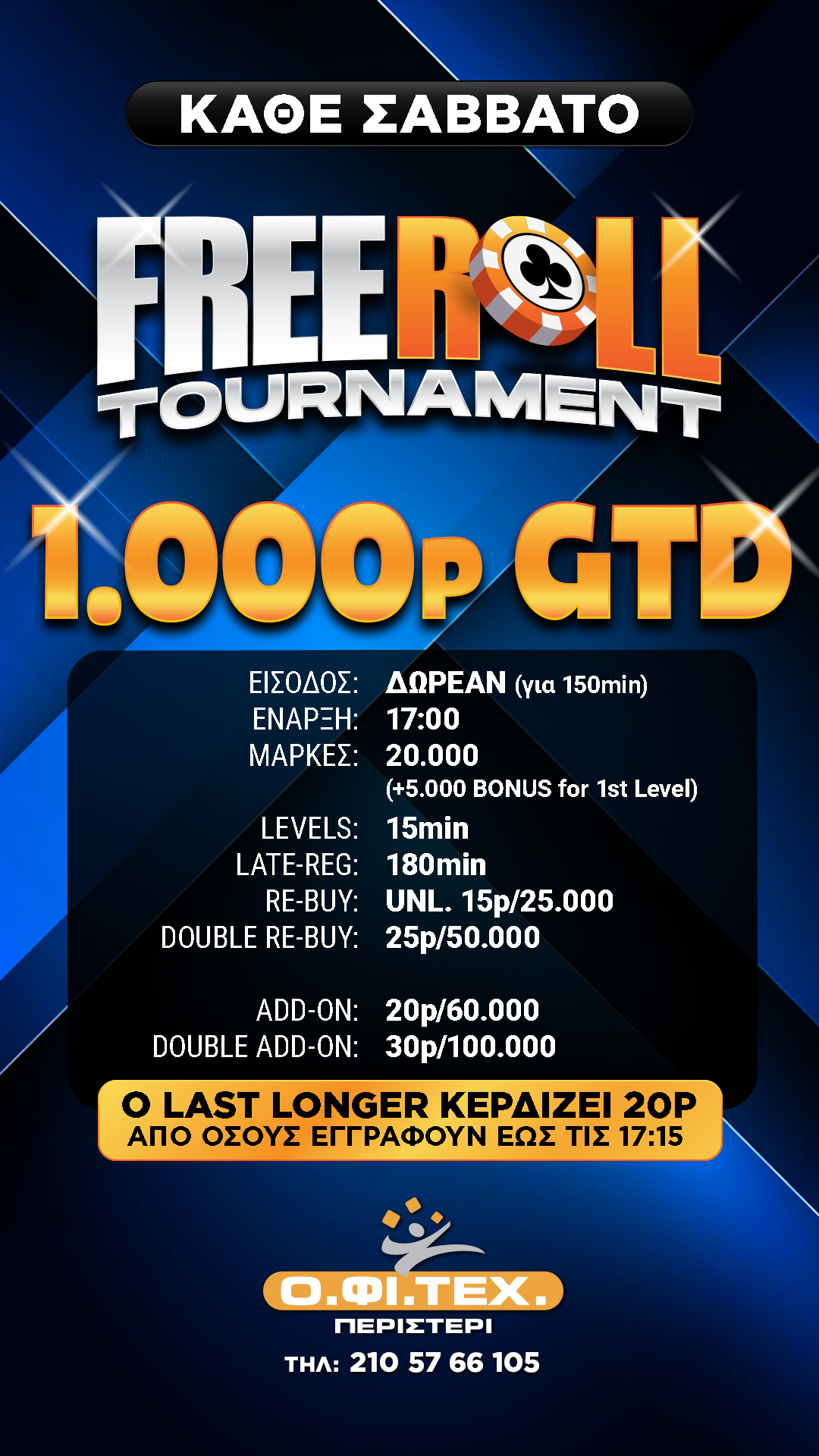 Κάθε Σάββατο freeroll με 1.000p gtd