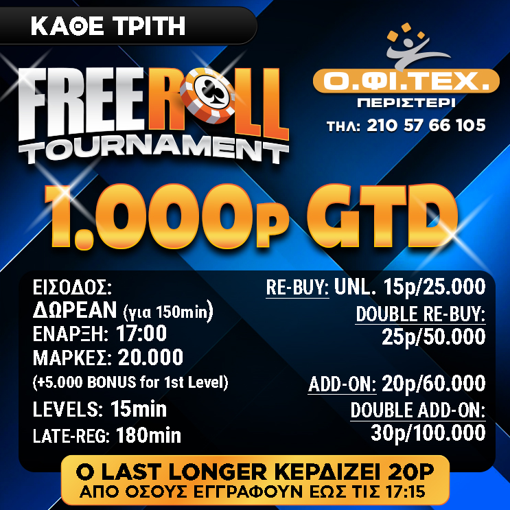 το freeroll (1.000p gtd) στο Περιστέρι