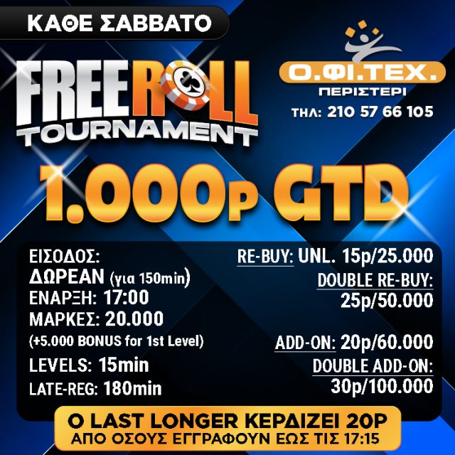 Καθυστερημένες εγγραφές και δικαίωμα για 3 rebuys τα πρώτα 240 λεπτά