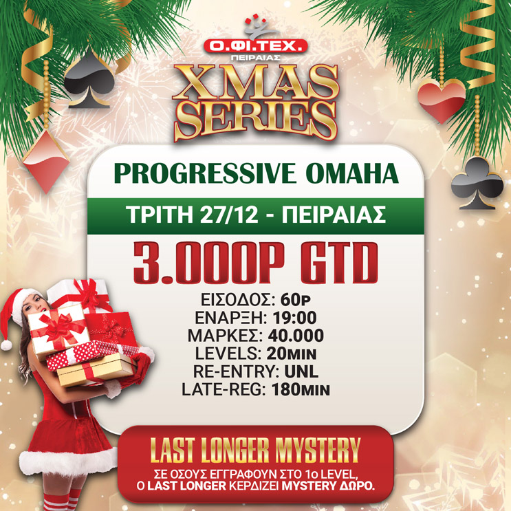 το freeroll και το Xmas Progressive Omaha (3.000p gtd) στον Πειραιά