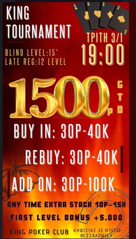 Από 7 έως 12 Φεβρουαρίου εξάλλου θα λάβει χώρα το King Monster #2 με 100p buy-in, 50p rebuys, 30.000 μάρκες αρχικό stack και 20.000p gtd!