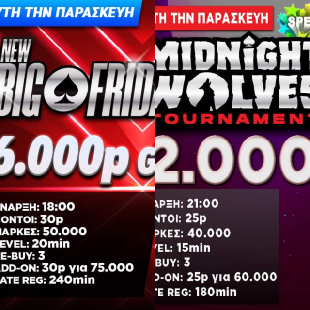 Δέκα μέρες πριν την έναρξη του δεύτερου Πανελλήνιου Πρωταθλήματος (80.000p gtd) και η Παρασκευή προσφέρεται για super δράση σε Άλιμο, Περιστέρι και Πειραιά με 8.000p gtd!