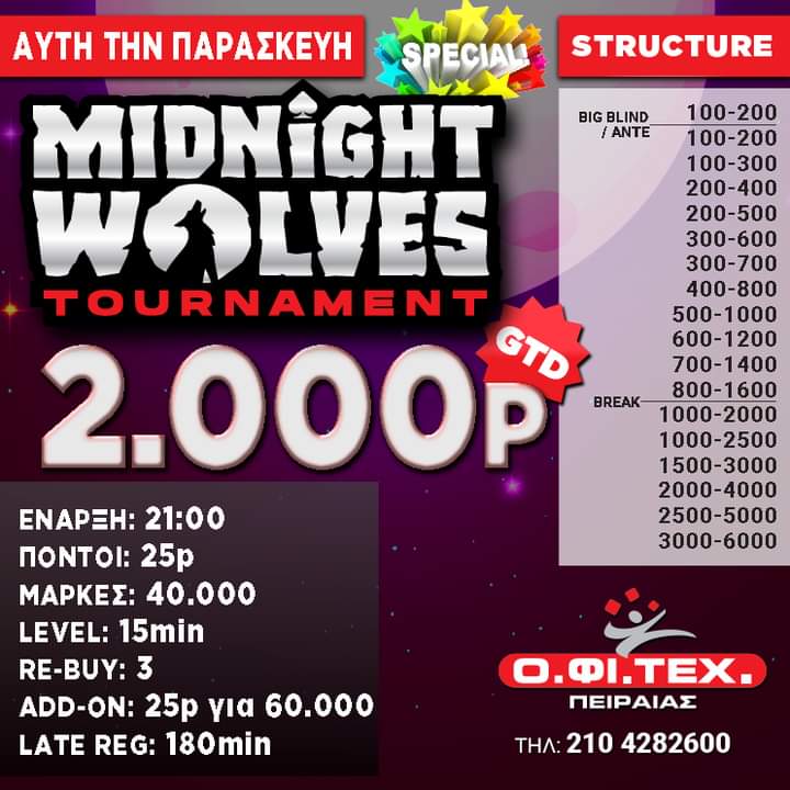 το freeroll και το Midnight Wolves (2.000p gtd) στον Πειραιά