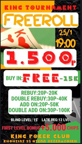 Τετάρτη 25 Ιανουαρίου – NLHE Freeroll