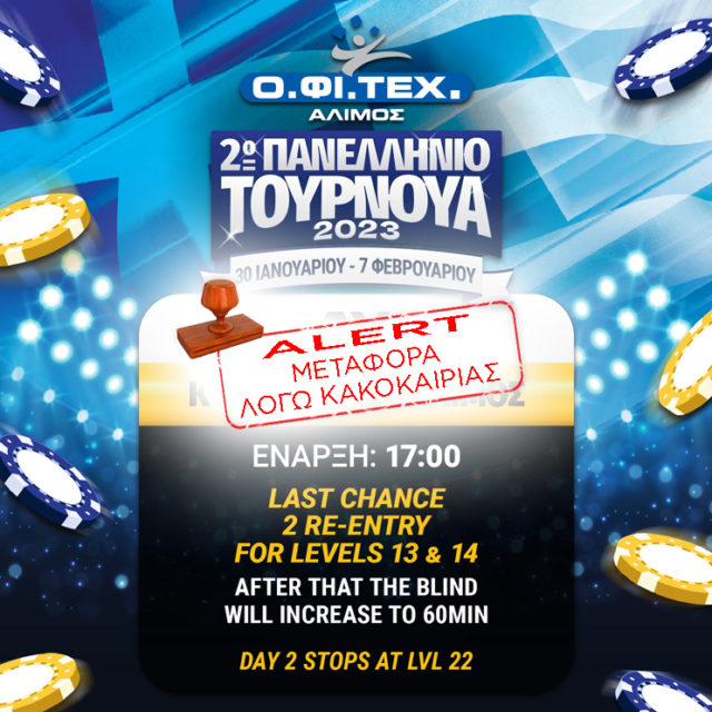 Μεταφέρεται για το Σάββατο 11/2 η Day 2 του Πανελλήνιου τουρνουά (80.000p gtd)