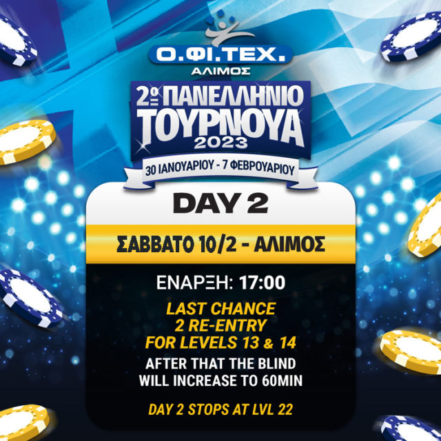 τη Day 2 του Πανελλήνιου τουρνουά (80.000p gtd) στον Άλιμο