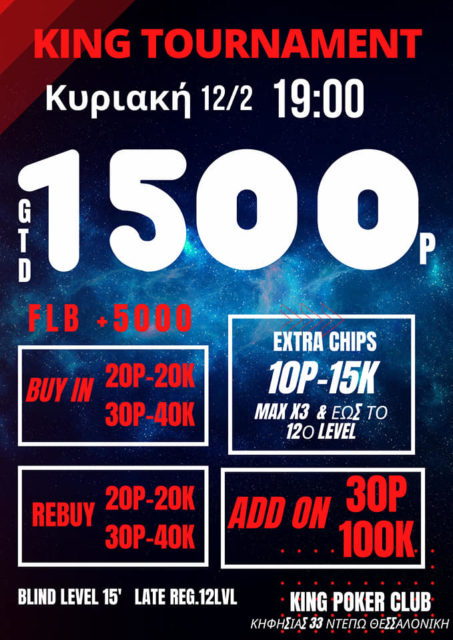 - Στις 19:00 το 20p NLHE με 1.500p gtd