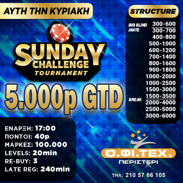 το Sunday Challenge (5.000p gtd) στο Περιστέρι