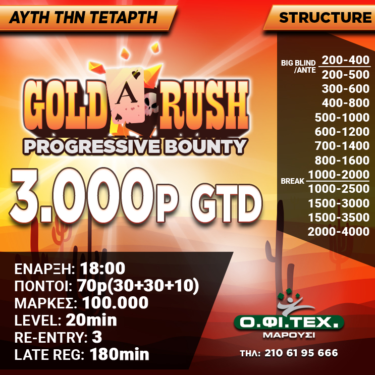 το Gold & Rush Progressive Bounty (3.000p gtd) στο Μαρούσι