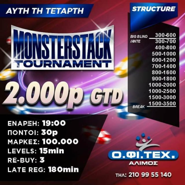 Στις 19:00 το Monsterstack (2.000p gtd)
