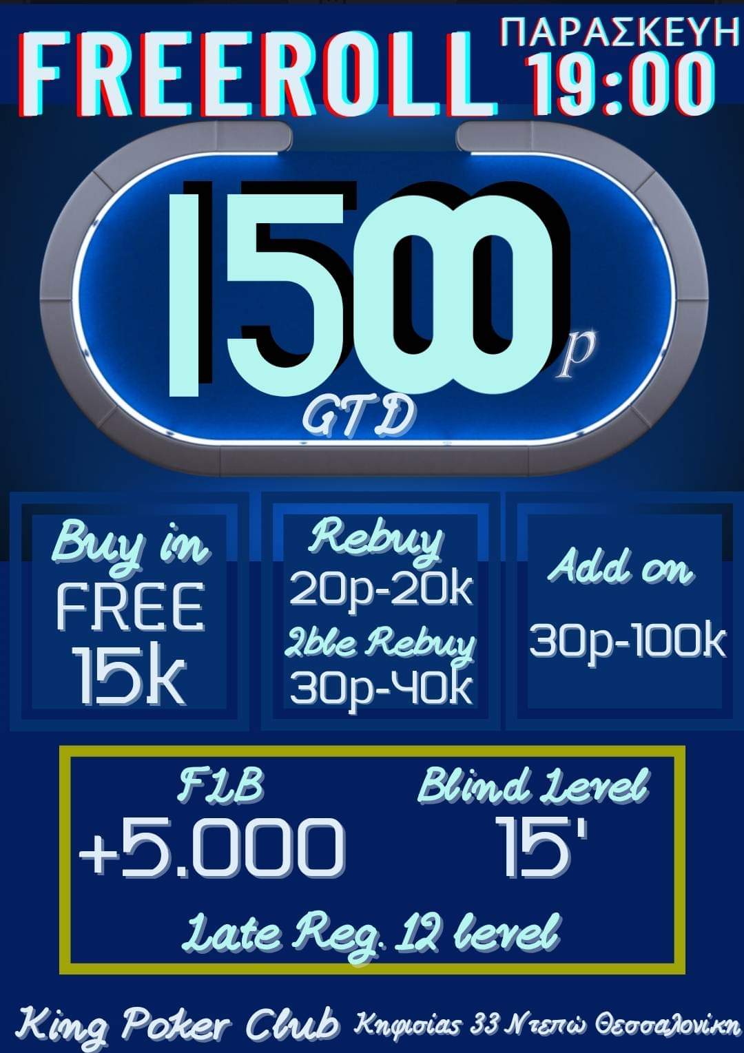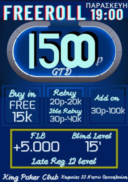Η Παρασκευή προσφέρεται για freeroll δράση (1.500p gtd) και φυσικά Texas & PLO ring games!