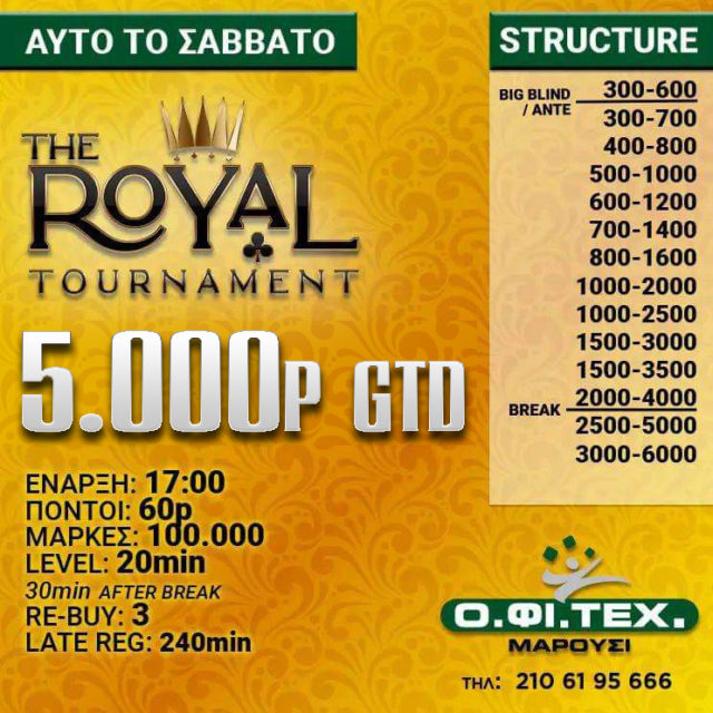 To Σάββατο τα “φώτα” πέφτουν στο special Royal με 5.000p gtd, ενώ αυτή τη Δευτέρα η αίθουσα του Αμαρουσίου θα έχει το… προνόμιο να φιλοξενήσει και το πρώτο satellite της Go for Gold Series!