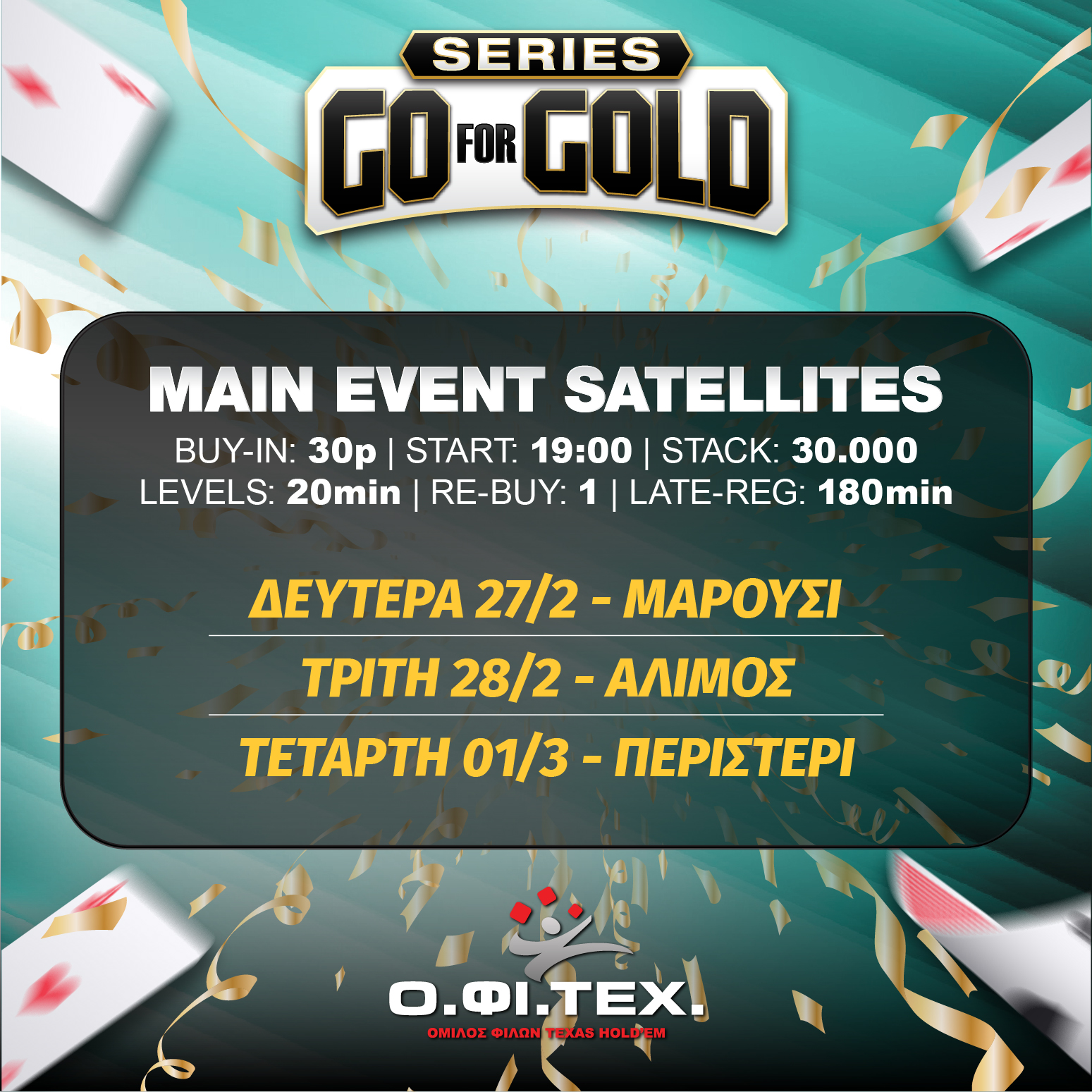 30p satellite ticket για το Golden Tour 50.000p GTD της Go for Gold Series στις θέσεις 1, 2 και bubble