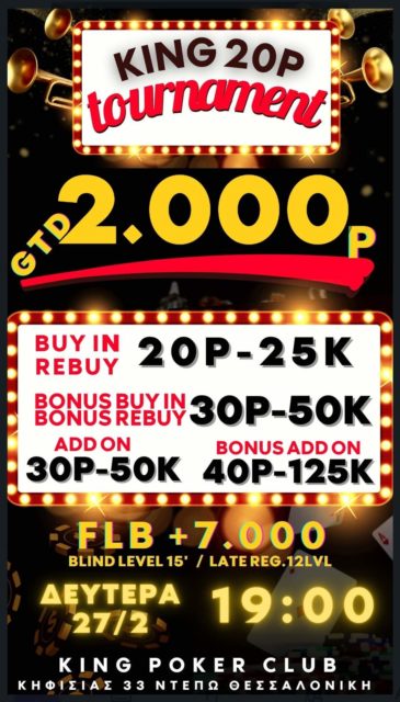 Δευτέρα 27 Φεβρουαρίου – NLHE