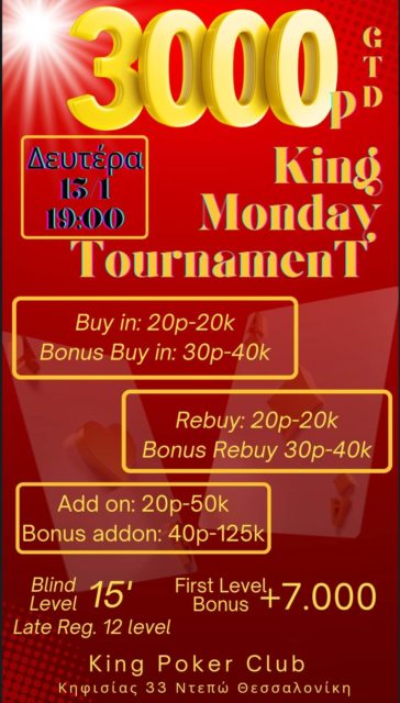 King: Στις 19:00 το 20p NLHE με 3.000p gtd