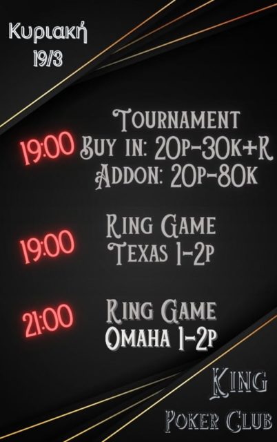 • Στις 19:00 1p/2p Texas games