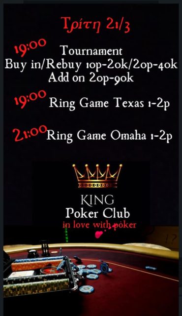 Τρίτη 21 Mαρτίου – NLHE