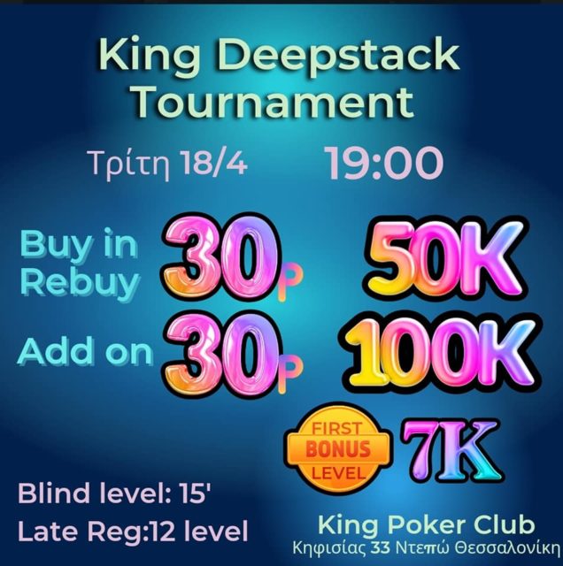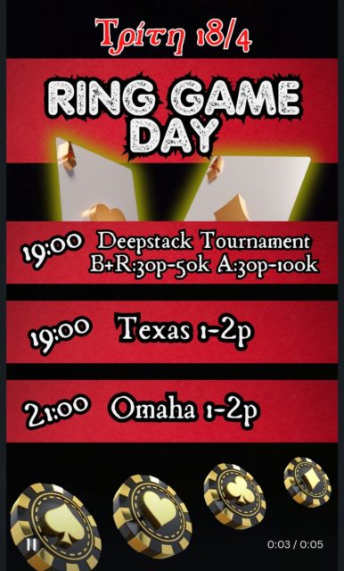 Τρίτη 18 Απριλίου – NLHE Deepstack
