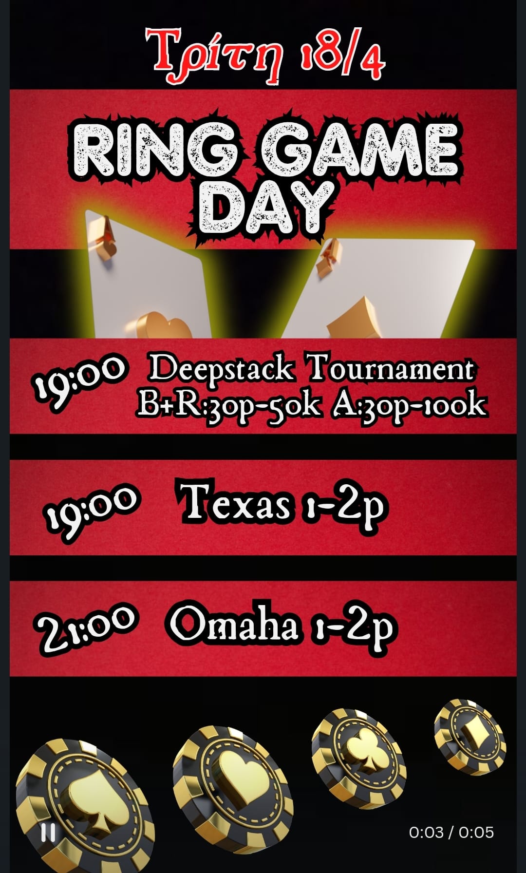 Τρίτη 18 Απριλίου – NLHE Deepstack