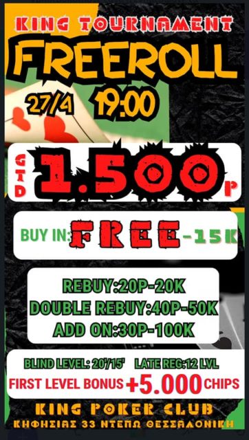 Πέμπτη 27 Απριλίου – NLHE Freeroll