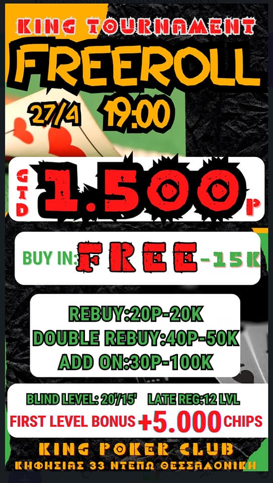 Πέμπτη 27 Απριλίου – NLHE Freeroll