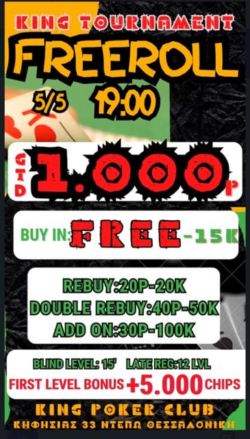 Παρασκευή 5 Μαΐου – NLHE Freeroll