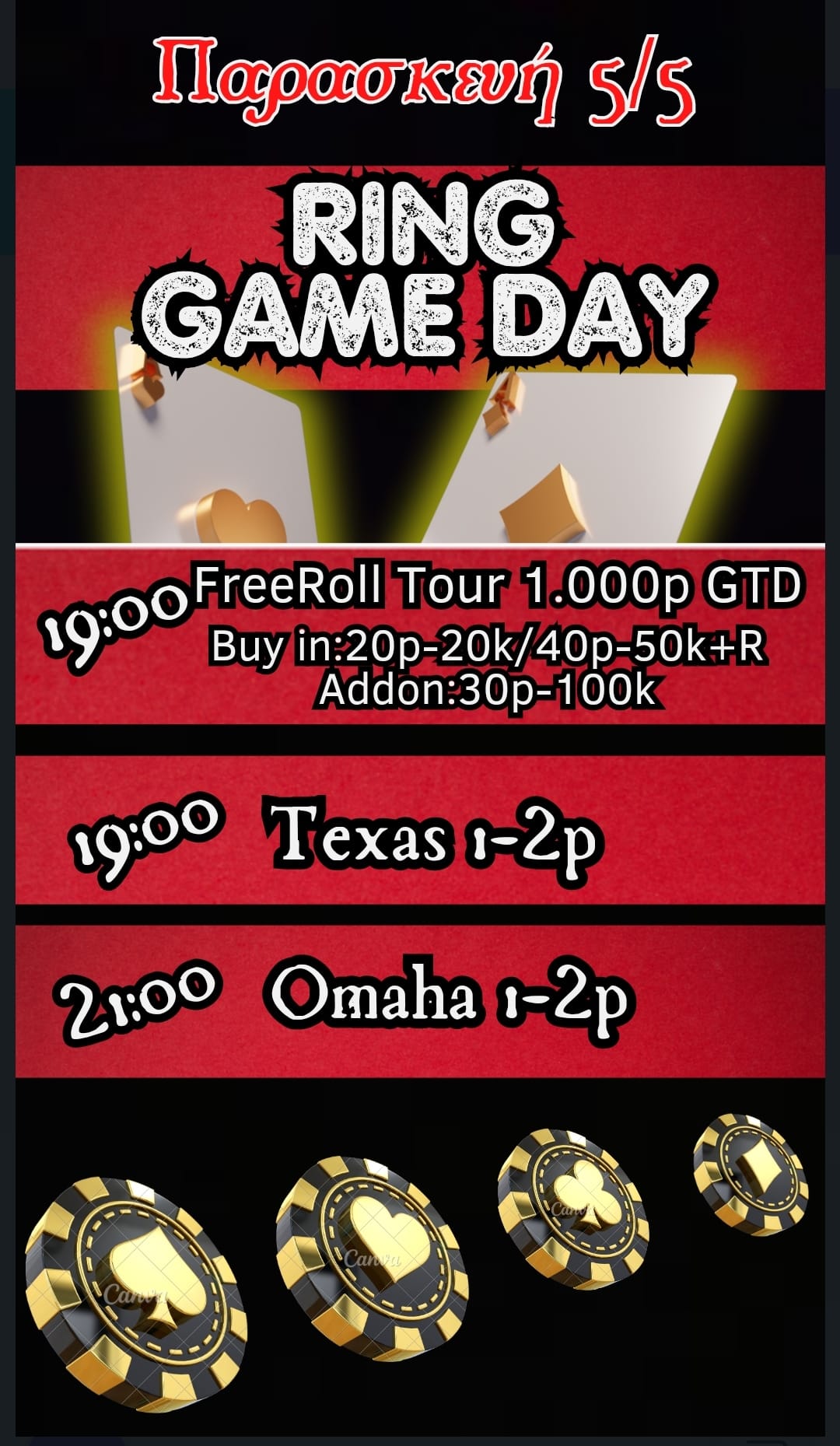 Παρασκευή 5 Μαΐου – NLHE Freeroll