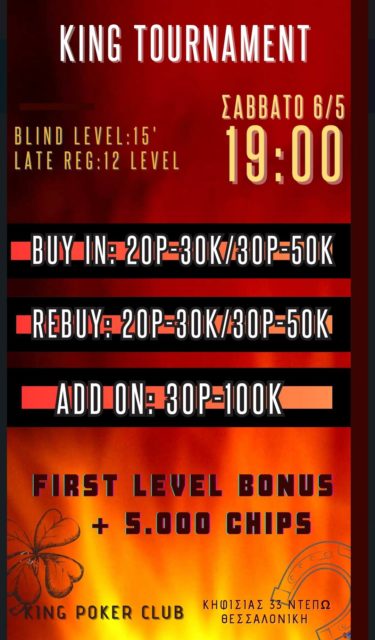 Σήμερα στις 19:οο θα “τρέξει” ένα 20p R/A NLHE με bonus επιπλέον μάρκες σε όσους εγγραφούν στο πρώτο level.