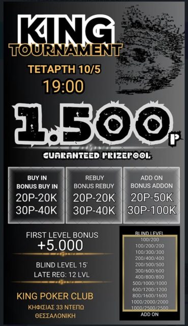 M” ένα μίνι τουρνουά που συνοδεύεται από 1.500p gtd θα κυλήσει σήμερα η βραδιά στο King.
