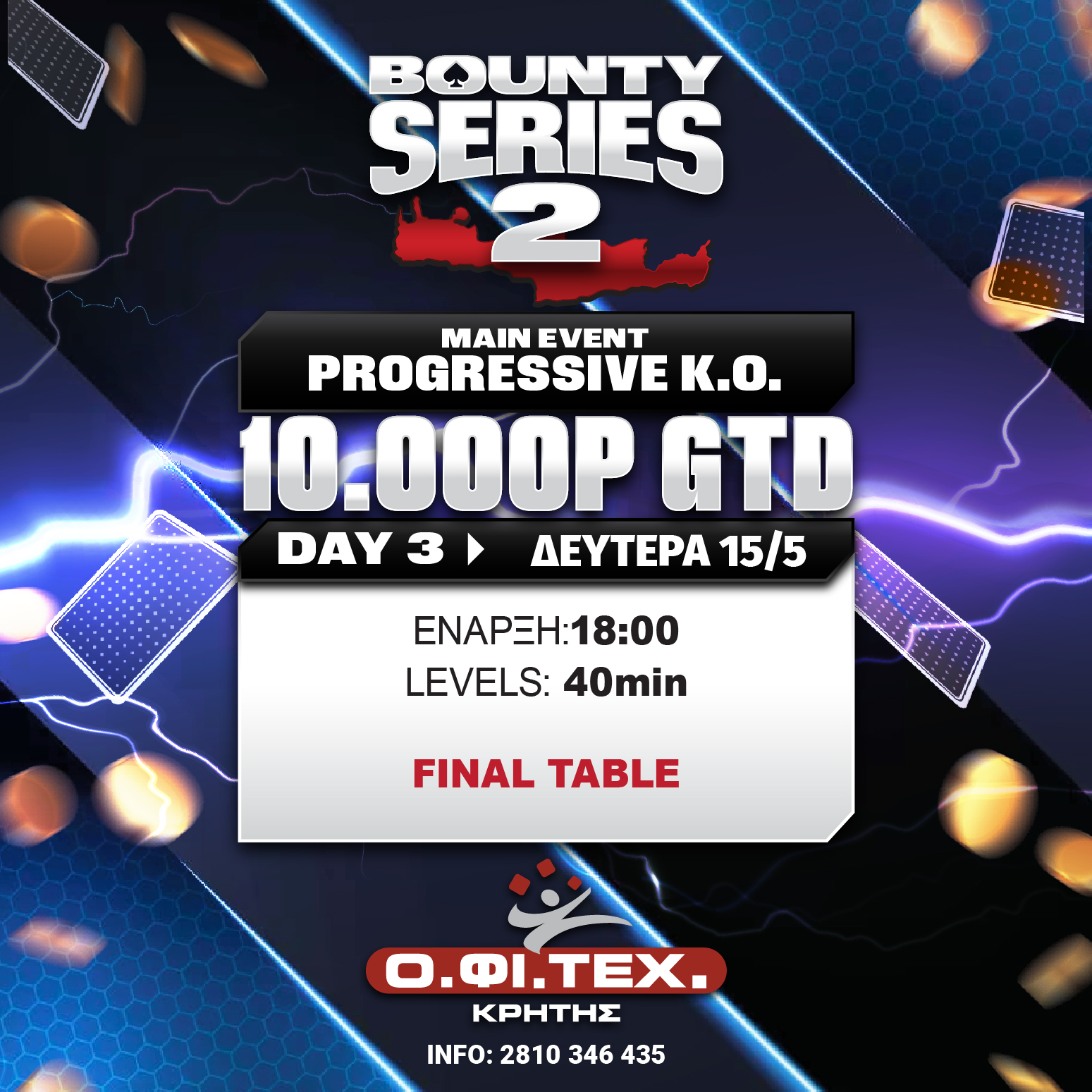 τη Day 3 του Progressive main event (10.000p gtd) και το Terminator (2.500p gtd) στο Ηράκλειο Κρήτης
