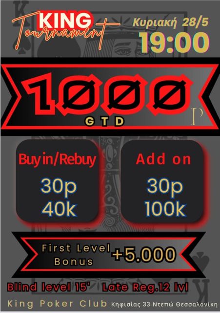 Η εβδομάδα ρίχνει αυλαία μ” ένα 30p R/A NLHE και 1.000p gtd, ενώ από νωρίς θα “τρέχουν” και τα δημοφιλή 1p/2p Texas & PLO ring games.