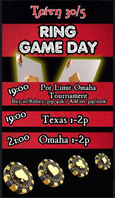 Όπως πάντα θα υπάρχουν φυσικά από νωρίς και τα 1p/2p ring games σε παραλλαγές Texas και PLO!