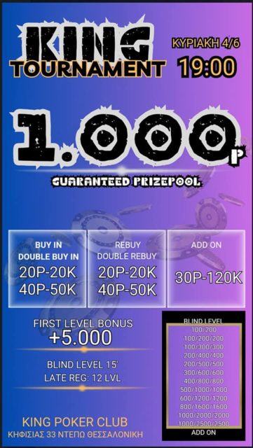 King: Το 1-2 Pouroman-Angel, 20p NLHE με 1.000p gtd στις 19:00 και ring games