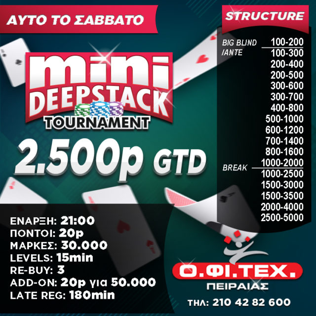 Στις 21:00 το Mini Deepstack (2.500p gtd)