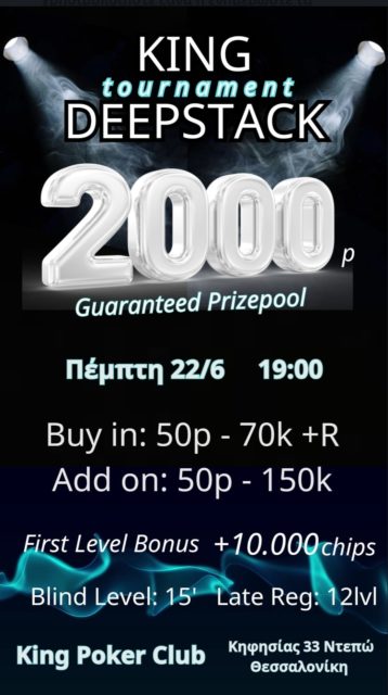 Πέμπτη 22 Ιουνίου – NLHE Deepstack