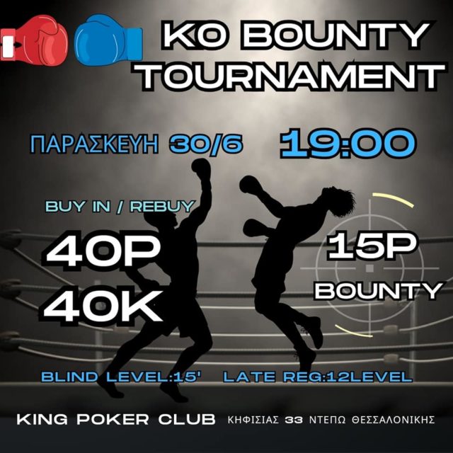 Σήμερα στις 19:00 θα λάβει χώρα ένα 40p NLHE ΚΟ Bounty και για κάθε παίκτη που αποκλείετε εξασφαλίζετε αυτομάτως και 15p!