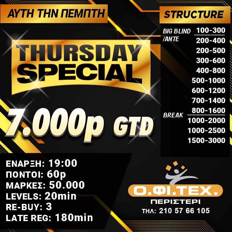 Στις 19:00 το Τhursday Special (7.000p gtd)