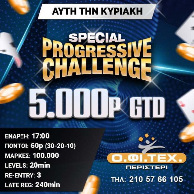 Στις 17:00 το Special Progressive Challenge (5.000p gtd)
