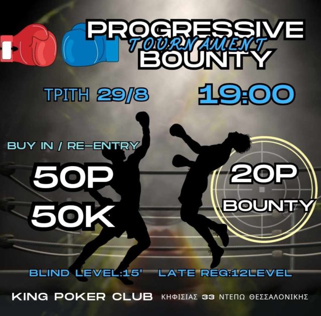 Τρίτη 29 Αυγούστου – NLHE Progressive Bounty